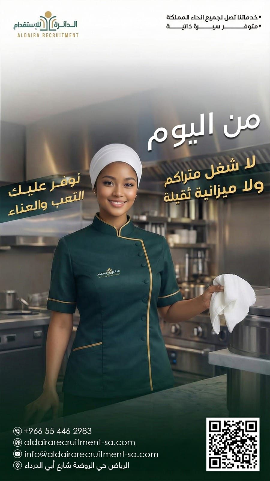 تقديم حلول استقدام عمالية متكاملة تسهّل على الأفراد الحصول على العمالة المنزلية المؤهلة (عاملة مساندة – سائق خاص – مربية – خدمات رعاية)، ومساعدة الشركات في اختيار الكوادر بكفاءة واحترافية، بما يدعم رؤية المملكة 2030.